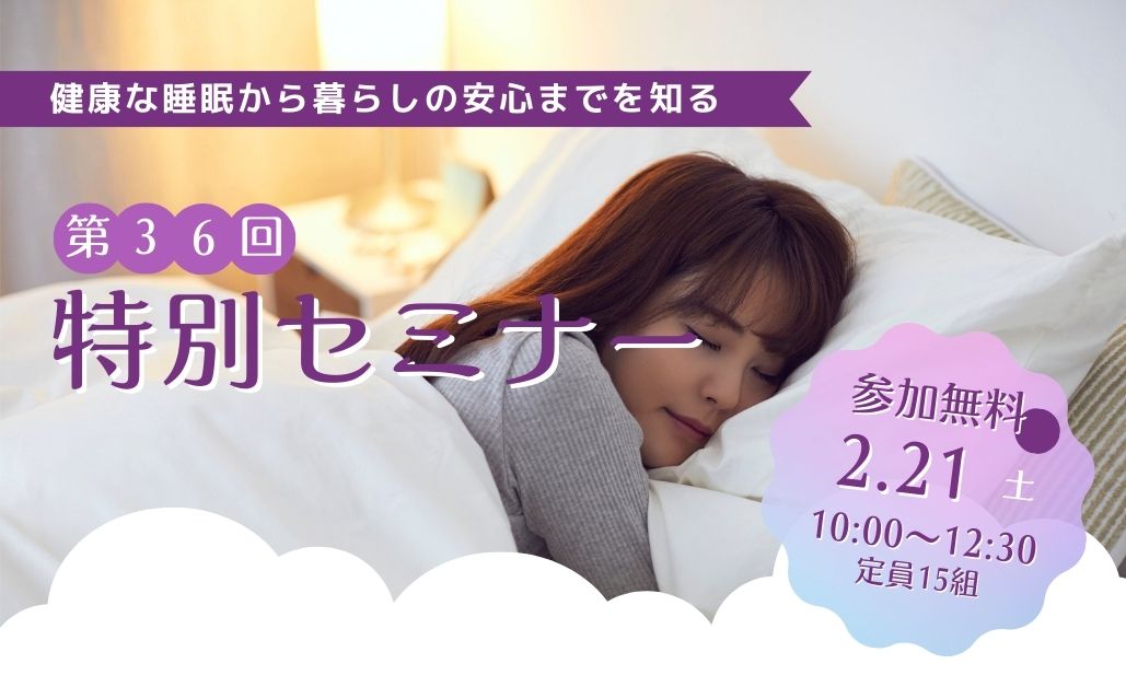 第36回となる今回は『健康な睡眠から暮らしの安心までを知る』と題し、セミナーを開催します。